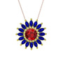 Garnet ve lab safir 925 ayar altın kaplama gümüş kolye (40 cm rose altın rolo zincir)