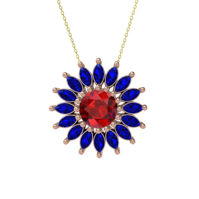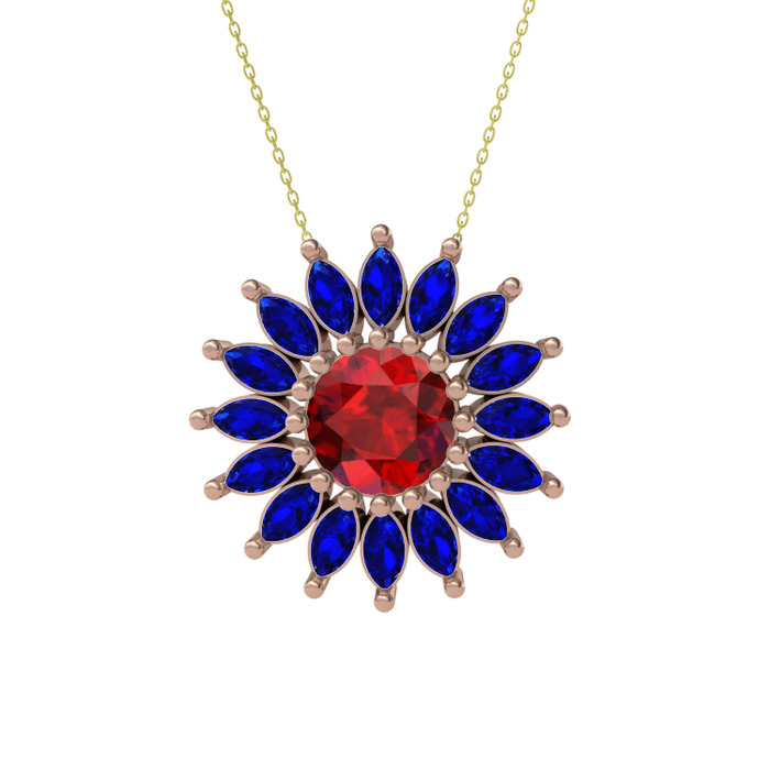 Garnet ve lab safir 925 ayar rose altın kaplama gümüş kolye (40 cm altın rolo zincir)