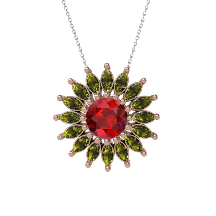 Garnet ve peridot 925 ayar rose altın kaplama gümüş kolye (40 cm gümüş rolo zincir)
