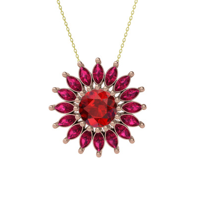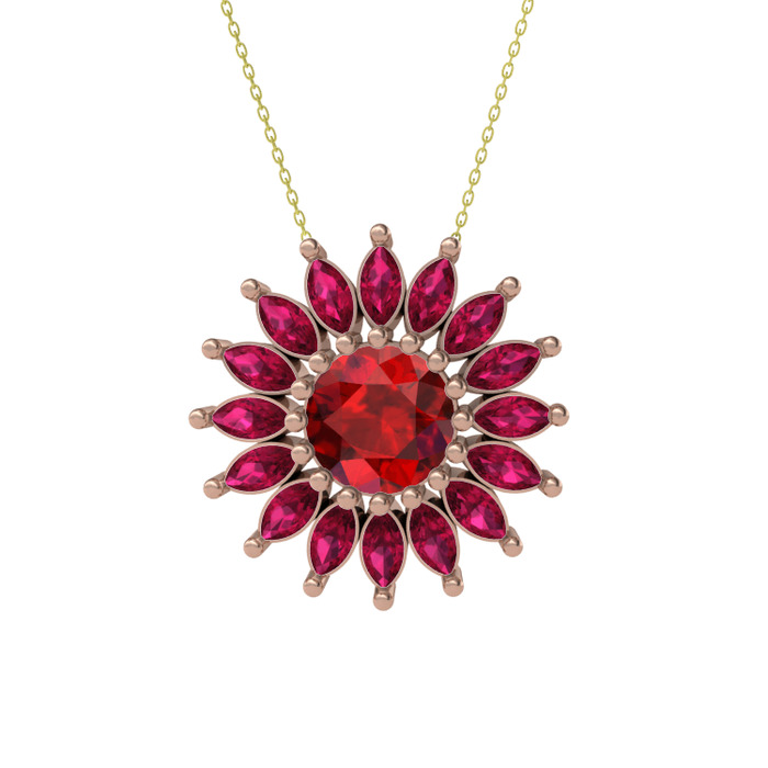 Garnet ve rodolit garnet 14 ayar rose altın kolye (40 cm altın rolo zincir)