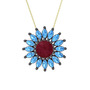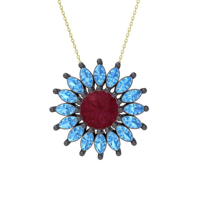 Kök yakut ve akuamarin 925 ayar siyah rodyum kaplama gümüş kolye (40 cm altın rolo zincir)