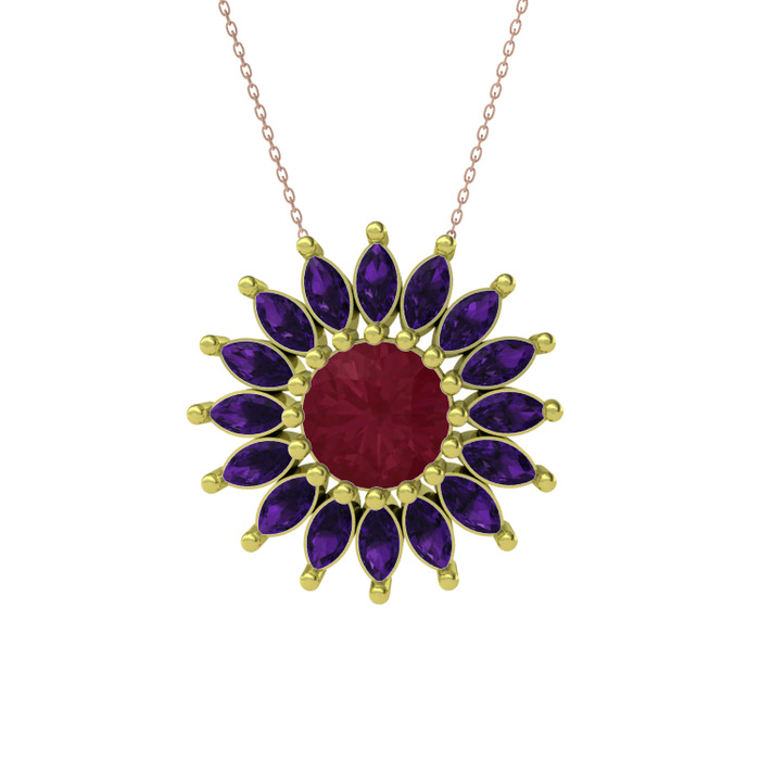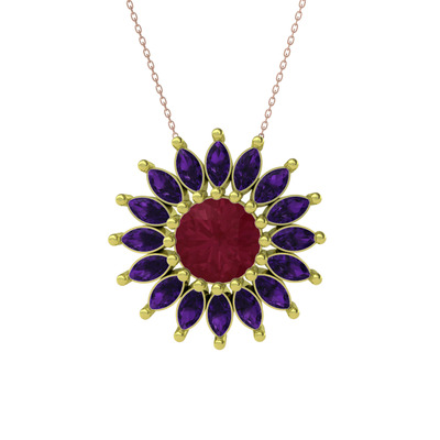 Kök yakut ve ametist 14 ayar altın kolye (40 cm rose altın rolo zincir)