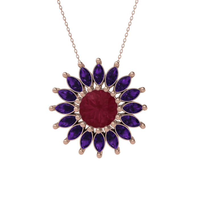 Kök yakut ve ametist 18 ayar rose altın kolye (40 cm rose altın rolo zincir)