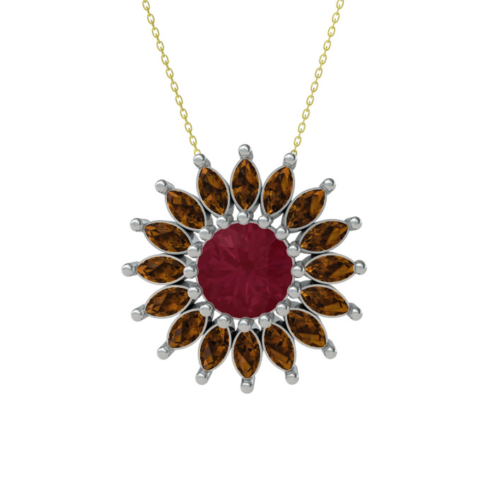 Kök yakut ve dumanlı kuvars 18 ayar beyaz altın kolye (40 cm altın rolo zincir)