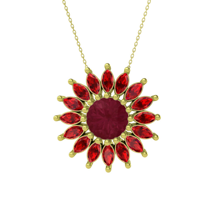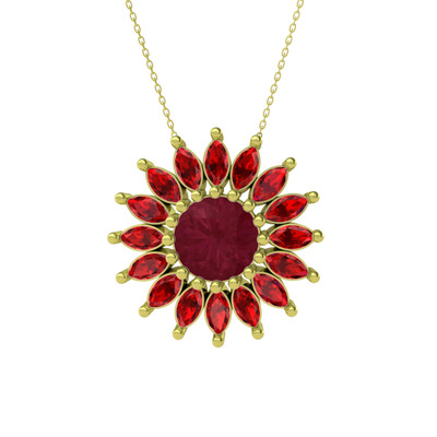 Kök yakut ve garnet 925 ayar altın kaplama gümüş kolye (40 cm altın rolo zincir)