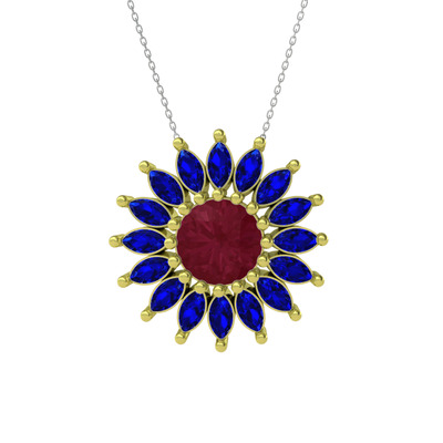 Kök yakut ve lab safir 14 ayar altın kolye (40 cm gümüş rolo zincir)