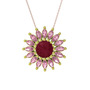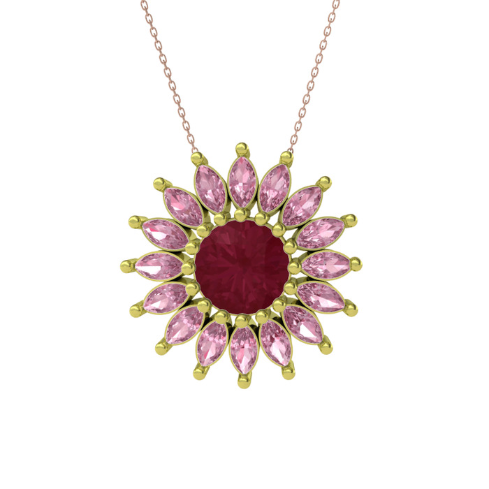 Kök yakut ve pembe kuvars 18 ayar altın kolye (40 cm rose altın rolo zincir)