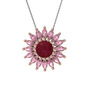 Kök yakut ve pembe kuvars 8 ayar rose altın kolye (40 cm gümüş rolo zincir)