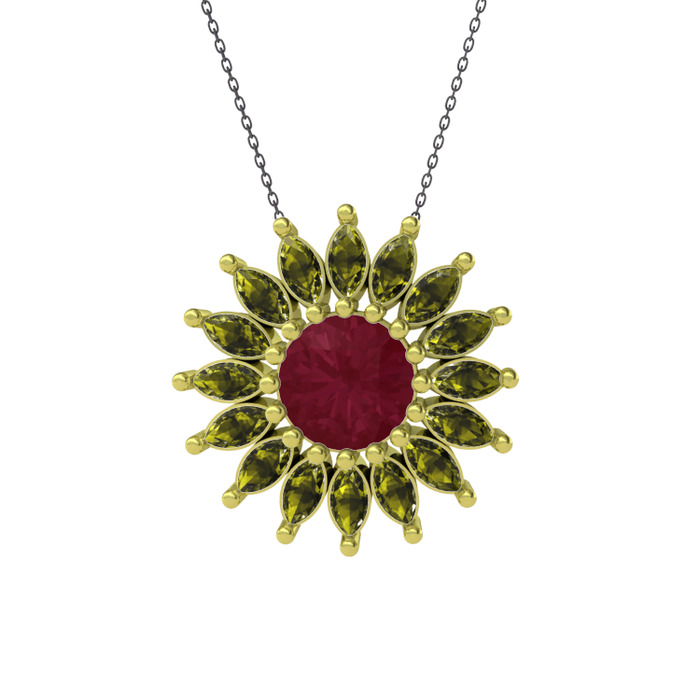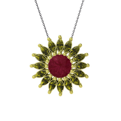 Kök yakut ve peridot 8 ayar altın kolye (40 cm gümüş rolo zincir)