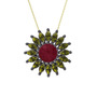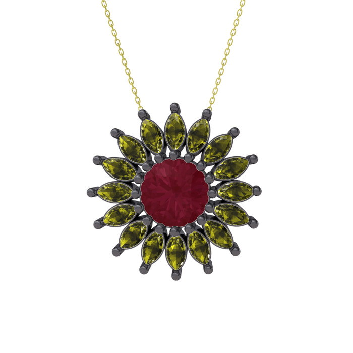 Kök yakut ve peridot 925 ayar siyah rodyum kaplama gümüş kolye (40 cm altın rolo zincir)