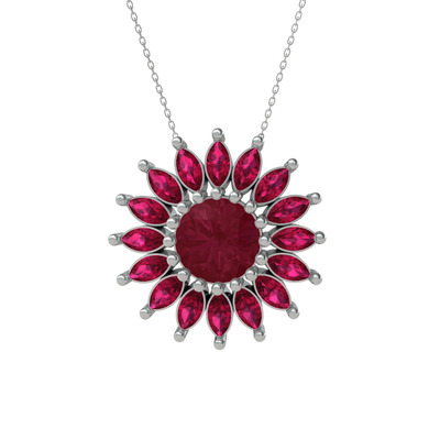 Kök yakut ve rodolit garnet 14 ayar beyaz altın kolye (40 cm beyaz altın rolo zincir)