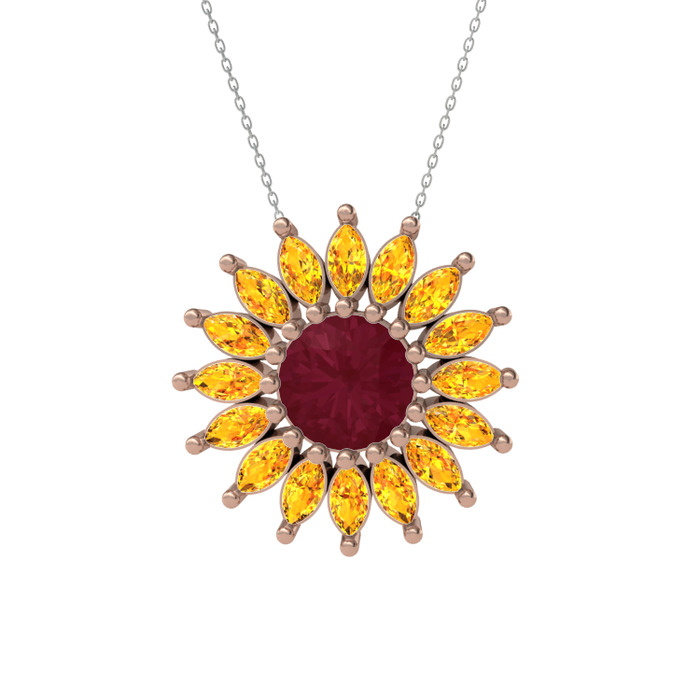 Kök yakut ve sitrin 18 ayar rose altın kolye (40 cm beyaz altın rolo zincir)