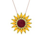 Kök yakut ve sitrin 925 ayar altın kaplama gümüş kolye (40 cm gümüş rolo zincir)