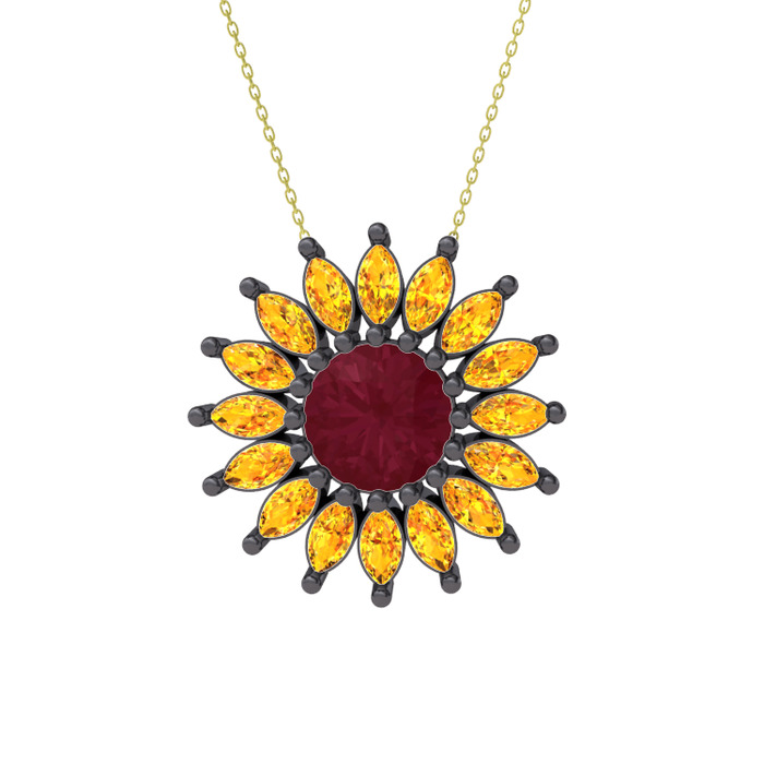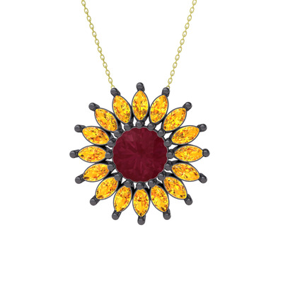 Kök yakut ve sitrin 925 ayar siyah rodyum kaplama gümüş kolye (40 cm gümüş rolo zincir)
