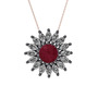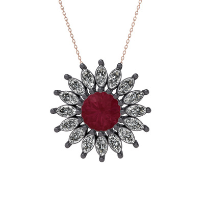 Kök yakut ve swarovski 925 ayar siyah rodyum kaplama gümüş kolye (40 cm gümüş rolo zincir)