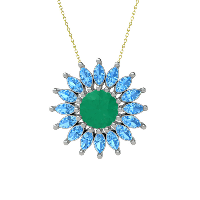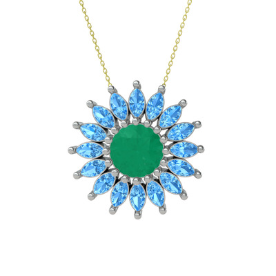 Kök zümrüt ve akuamarin 14 ayar beyaz altın kolye (40 cm altın rolo zincir)