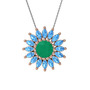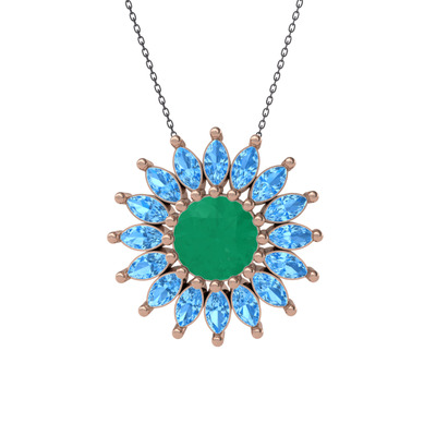 Kök zümrüt ve akuamarin 8 ayar rose altın kolye (40 cm gümüş rolo zincir)