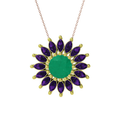 Kök zümrüt ve ametist 14 ayar altın kolye (40 cm rose altın rolo zincir)
