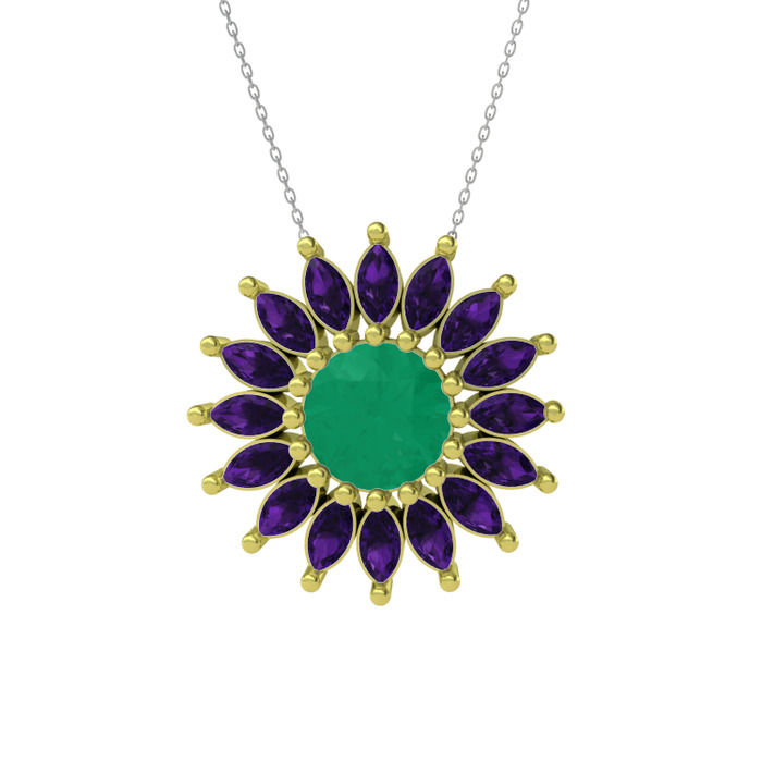 Kök zümrüt ve ametist 18 ayar altın kolye (40 cm beyaz altın rolo zincir)