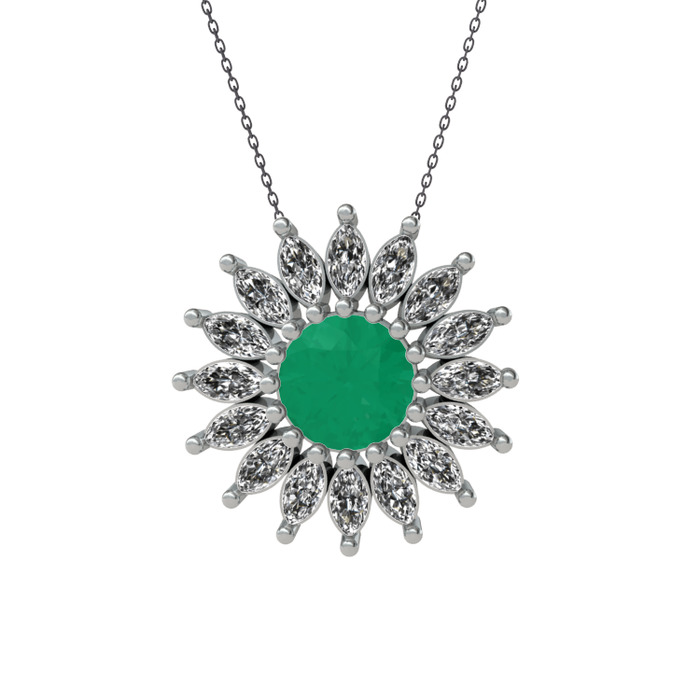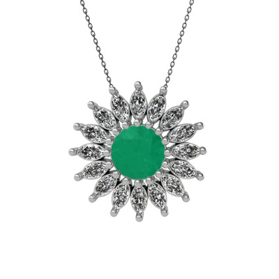 Kök zümrüt ve beyaz zirkon 18 ayar beyaz altın kolye (40 cm gümüş rolo zincir)