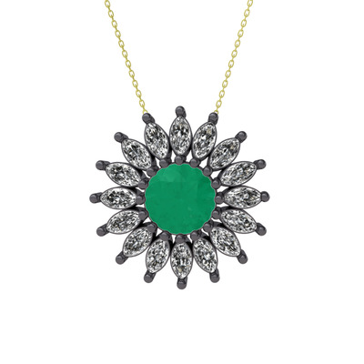 Kök zümrüt ve beyaz zirkon 925 ayar siyah rodyum kaplama gümüş kolye (40 cm altın rolo zincir)