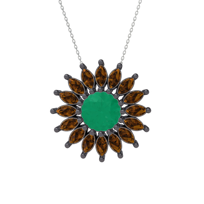 Kök zümrüt ve dumanlı kuvars 925 ayar siyah rodyum kaplama gümüş kolye (40 cm beyaz altın rolo zincir)