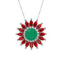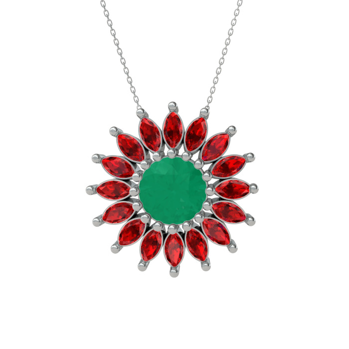 Kök zümrüt ve garnet 14 ayar beyaz altın kolye (40 cm beyaz altın rolo zincir)