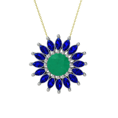 Kök zümrüt ve lab safir 18 ayar beyaz altın kolye (40 cm gümüş rolo zincir)