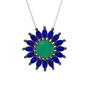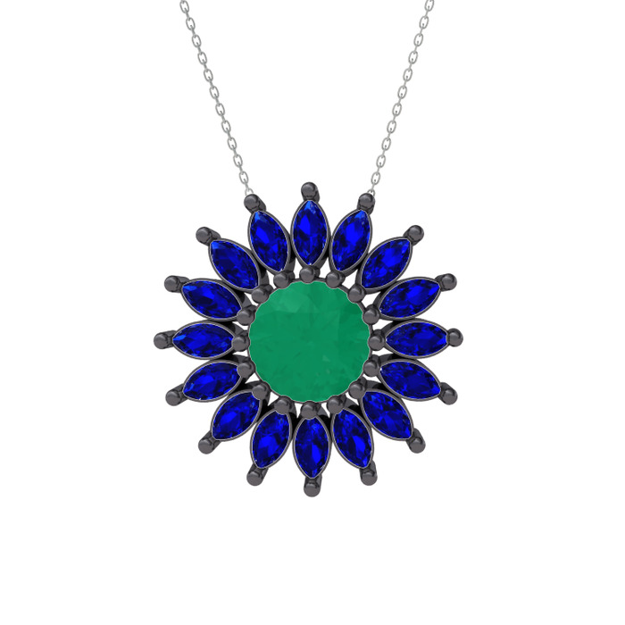 Kök zümrüt ve lab safir 925 ayar siyah rodyum kaplama gümüş kolye (40 cm gümüş rolo zincir)