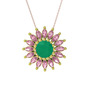 Kök zümrüt ve pembe kuvars 925 ayar altın kaplama gümüş kolye (40 cm rose altın rolo zincir)
