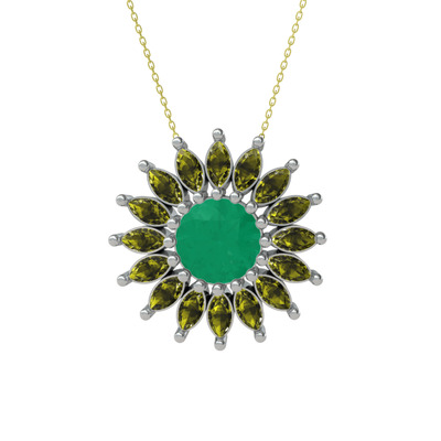Kök zümrüt ve peridot 14 ayar beyaz altın kolye (40 cm gümüş rolo zincir)