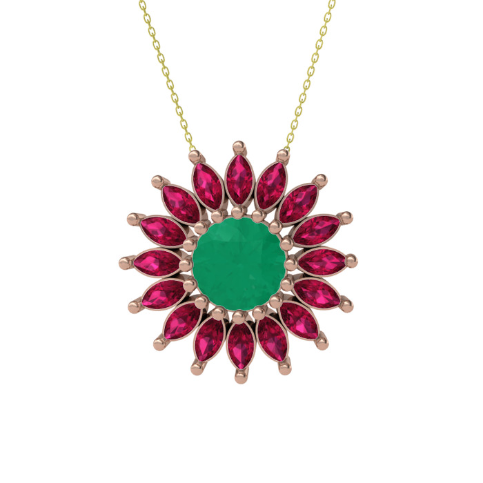 Kök zümrüt ve rodolit garnet 14 ayar rose altın kolye (40 cm altın rolo zincir)