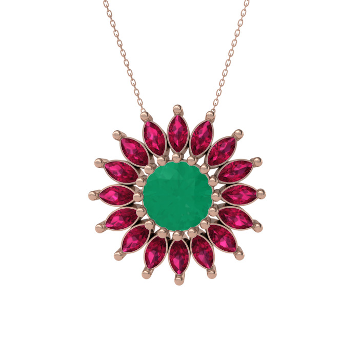 Kök zümrüt ve rodolit garnet 14 ayar rose altın kolye (40 cm rose altın rolo zincir)
