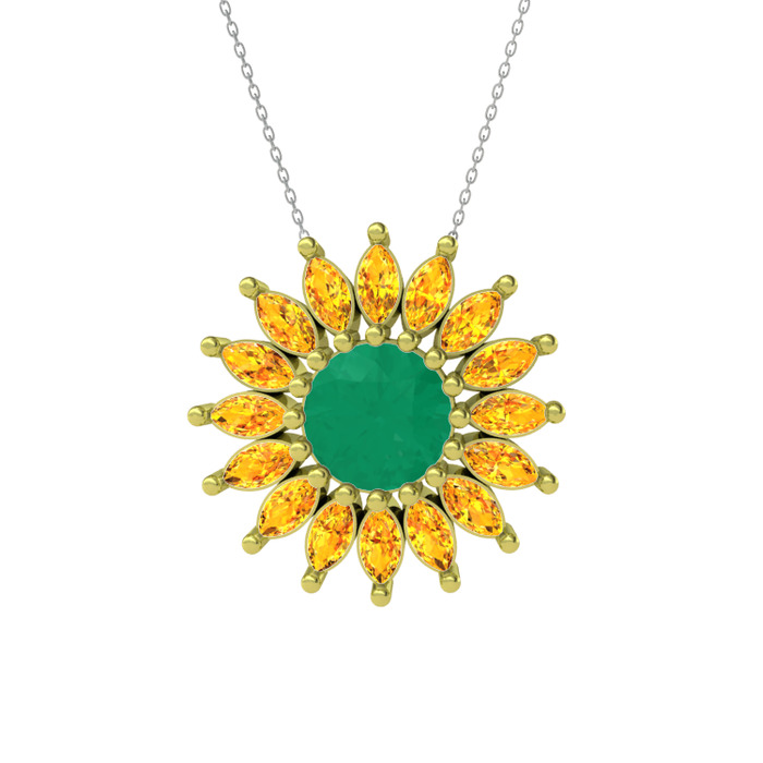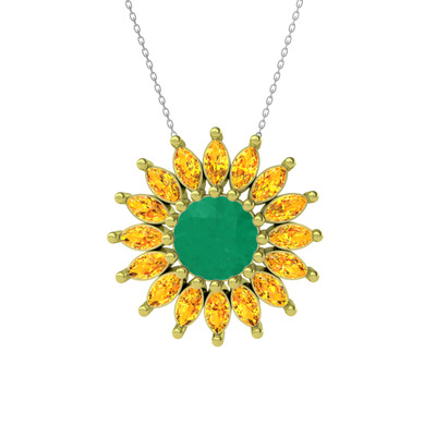 Kök zümrüt ve sitrin 925 ayar altın kaplama gümüş kolye (40 cm gümüş rolo zincir)