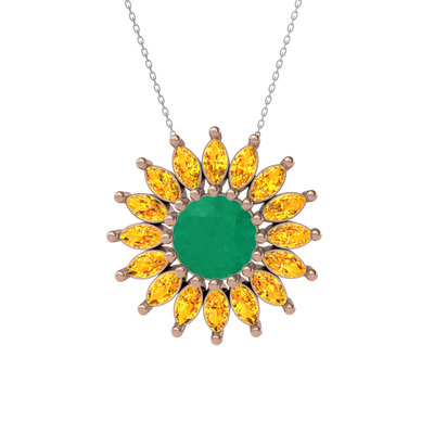 Kök zümrüt ve sitrin 925 ayar rose altın kaplama gümüş kolye (40 cm beyaz altın rolo zincir)