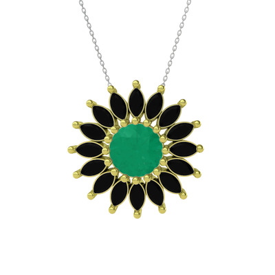 Kök zümrüt ve siyah zirkon 18 ayar altın kolye (40 cm beyaz altın rolo zincir)