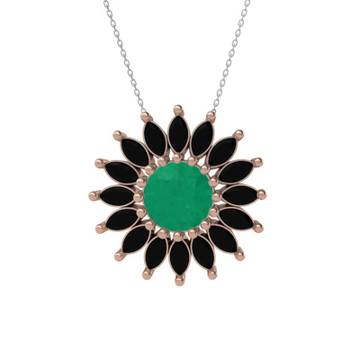 Kök zümrüt ve siyah zirkon 925 ayar rose altın kaplama gümüş kolye (40 cm gümüş rolo zincir)