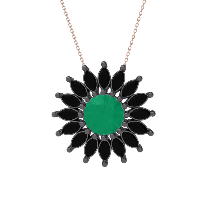 Kök zümrüt ve siyah zirkon 925 ayar siyah rodyum kaplama gümüş kolye (40 cm gümüş rolo zincir)