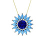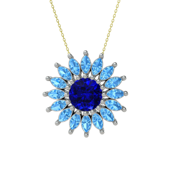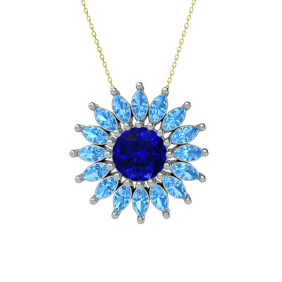 Lab safir ve akuamarin 18 ayar beyaz altın kolye (40 cm altın rolo zincir)