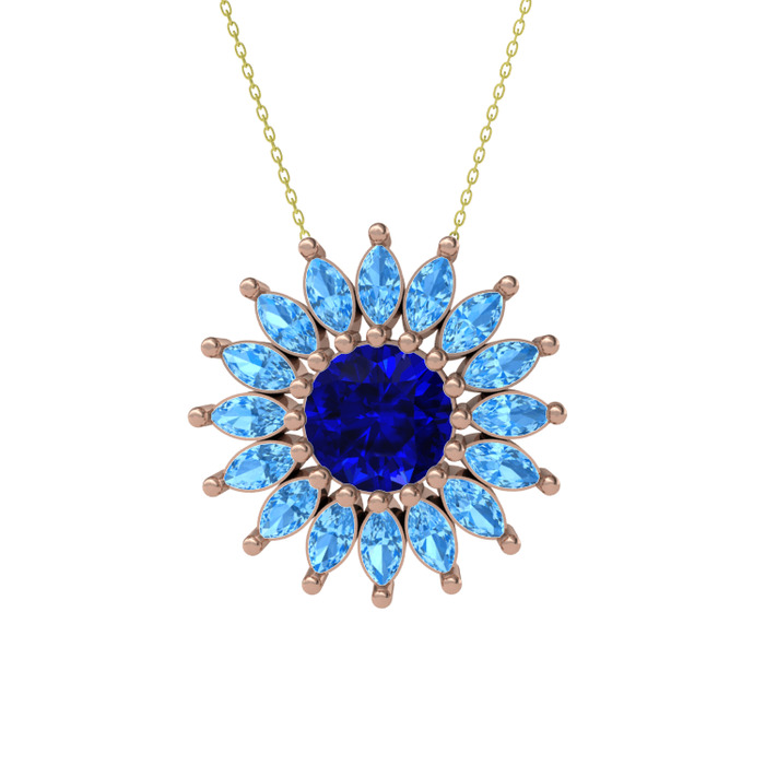 Lab safir ve akuamarin 18 ayar rose altın kolye (40 cm altın rolo zincir)