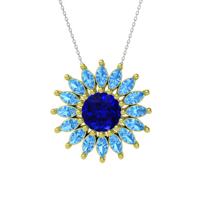 Lab safir ve akuamarin 8 ayar altın kolye (40 cm gümüş rolo zincir)