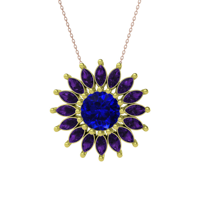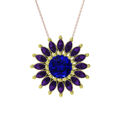 Lab safir ve ametist 14 ayar altın kolye (40 cm rose altın rolo zincir)