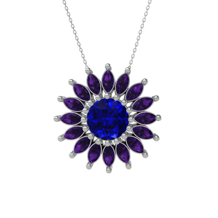 Lab safir ve ametist 18 ayar beyaz altın kolye (40 cm beyaz altın rolo zincir)