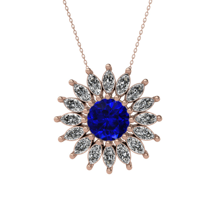 Lab safir ve beyaz zirkon 8 ayar rose altın kolye (40 cm rose altın rolo zincir)