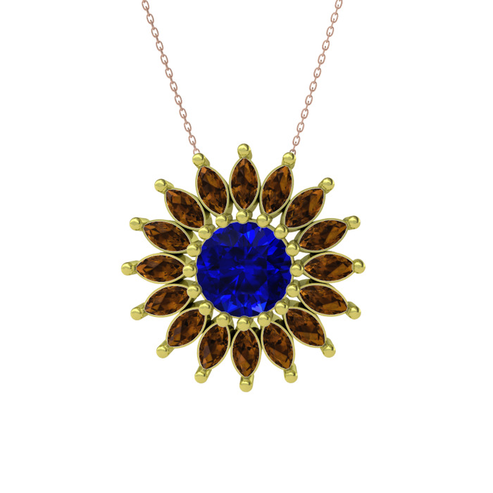 Lab safir ve dumanlı kuvars 8 ayar altın kolye (40 cm rose altın rolo zincir)
