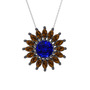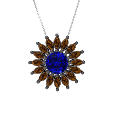 Lab safir ve dumanlı kuvars 925 ayar siyah rodyum kaplama gümüş kolye (40 cm beyaz altın rolo zincir)