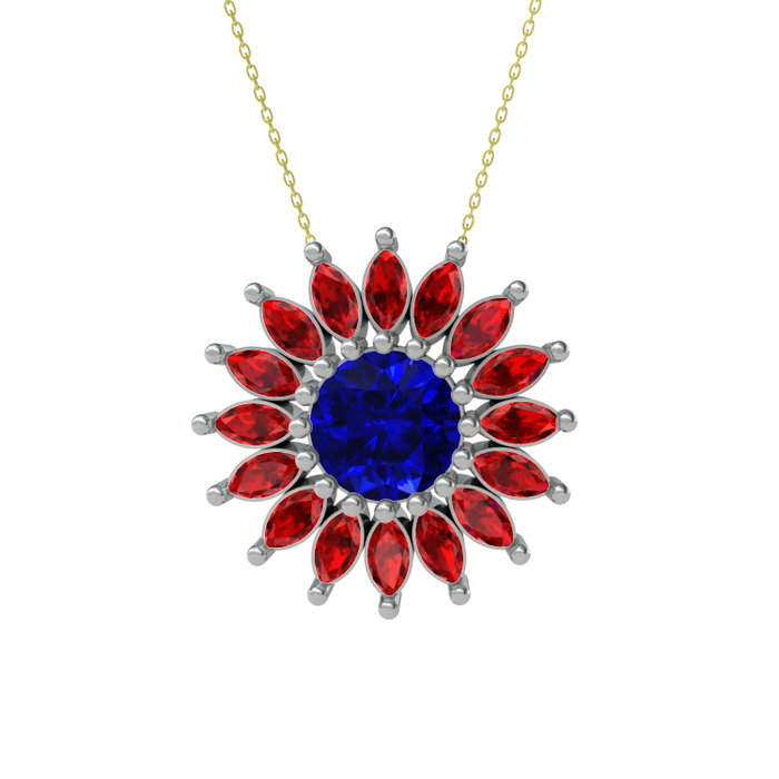 Lab safir ve garnet 18 ayar beyaz altın kolye (40 cm altın rolo zincir)