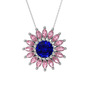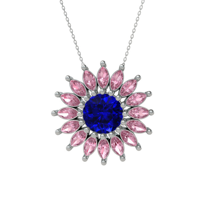 Lab safir ve pembe kuvars 8 ayar beyaz altın kolye (40 cm gümüş rolo zincir)