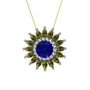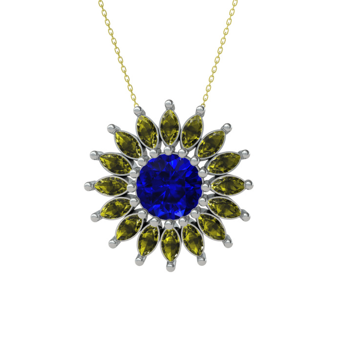 Lab safir ve peridot 18 ayar beyaz altın kolye (40 cm gümüş rolo zincir)