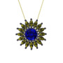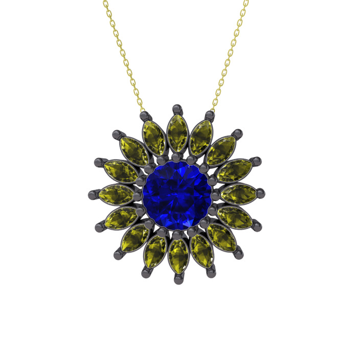 Lab safir ve peridot 925 ayar siyah rodyum kaplama gümüş kolye (40 cm altın rolo zincir)